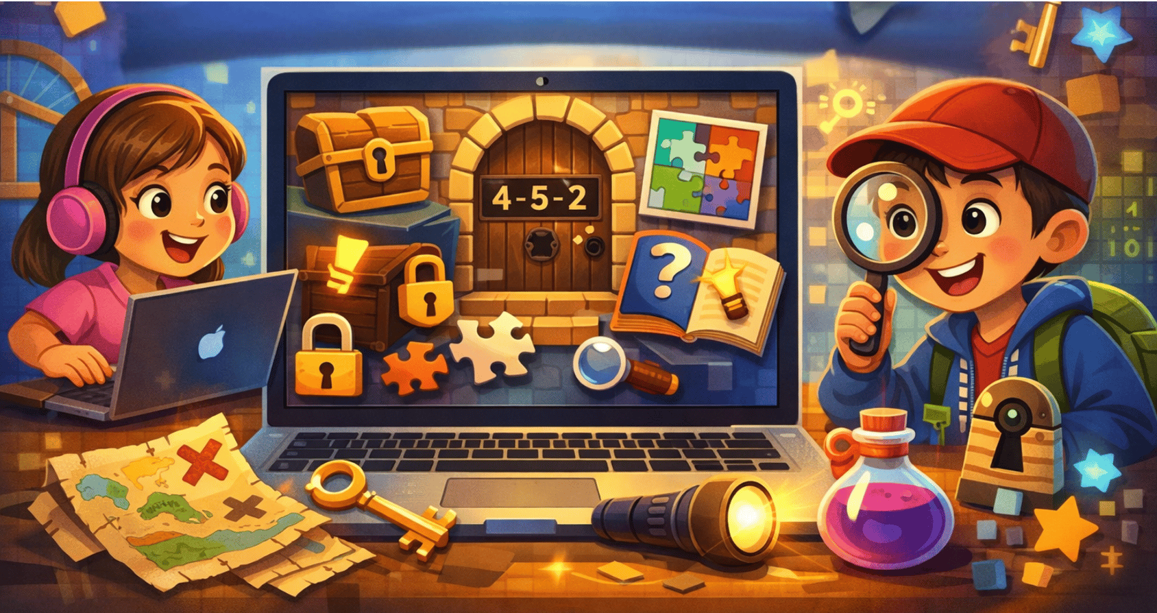 Unlike traditional escape rooms, these K-2 versions are completely online. All the puzzles and clues are built right into the experience. Instead of typing complex passwords, children will “unlock” challenges by clicking on the correct combination of numbers, letters, colors, directional arrows, or shapes. This makes it accessible and engaging for early or non-readers.
